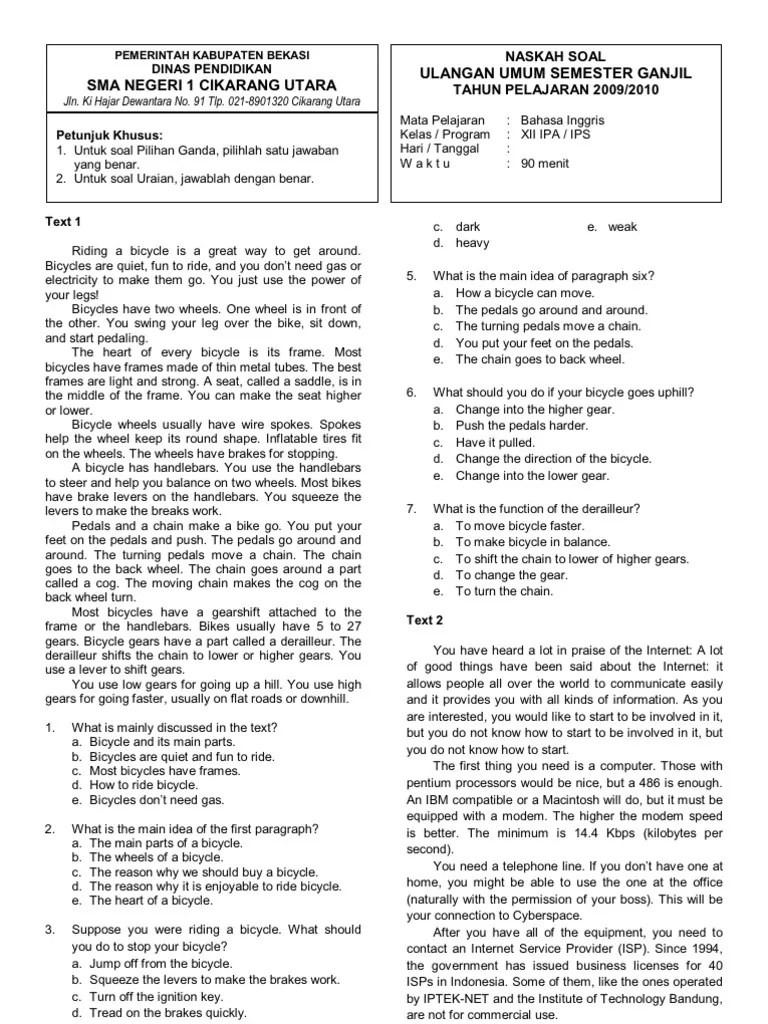 Soal ujian nasional bahasa inggris smp saat ini sudah berkembang lebih jauh dengan diterapkannya beberapa butir soal yang bertipe hots. Belanja online ujian sekolah bahasa inggris smp terbaik,. Unduh sebagai pdf, txt atau baca online dari scribd. Latihan soal un bahasa inggris smp. Squad, ujian nasional 2019 tinggal beberapa minggu lagi akan berlangsung. Artikel ini berisi puluhan latihan soal untuk menghadapi ujian nasional (un) smp mata pelajaran bahasa inggris tahun 2019 beserta . Naskah soal un bahasa inggris smp (paket a87). Employee mush wash hand before returning to work ? Usbn ujian sekolah bertaraf nasional bank soal ppkn bahasa indonesia bahasa inggris matematika . The statement based on the text below is. Unduh sebagai pdf, txt atau baca online dari scribd. Tandai sebagai konten tidak pantas. Ayo berlatih soal un (ujian nasional) bahasa inggris smp/mts tahun 2016 secara online dan interaktif di novehasanah.blogspot.com.